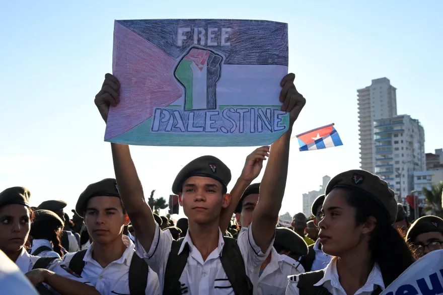 ولوح الكوبيون بالأعلام الفلسطينية وهتفوا من أجل السلام، ونددوا بواشنطن لتقديمها الأسلحة والدعم الدبلوماسي لحليفتها إسرائيل خلال الصراع.