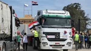وأشار مجاهد إلى أنه يشاهد حاليًا التحضيرات لدخول دفعة جديدة من المساعدات عبر البوابة المجاورة لمعبر رفح، كما لفت إلى وجود المركز اللوجستي في رفح بالساحة الترابية الملاصقة للبوابة المصرية، حيث تتواجد مئات الشاحنات الأخرى بانتظار استكمال الإجراءات اللازمة.