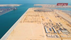 وإنشاء خطوط سكك حديدية(قطار كهربائي / ديزل ) بطول 30 كم وإنشاء شبكة من الطرق الداخلية بطول 17 كم رصف خرساني 3 حارة/ اتجاه ، ليربط بين الأرصفة والميناء ككل بما يساهم في عدم وجود أي تكدسات مستقبلًا داخل الميناء ، بالإضافة إلى إنشاء حواجز أمواج بطول 3270 مترا