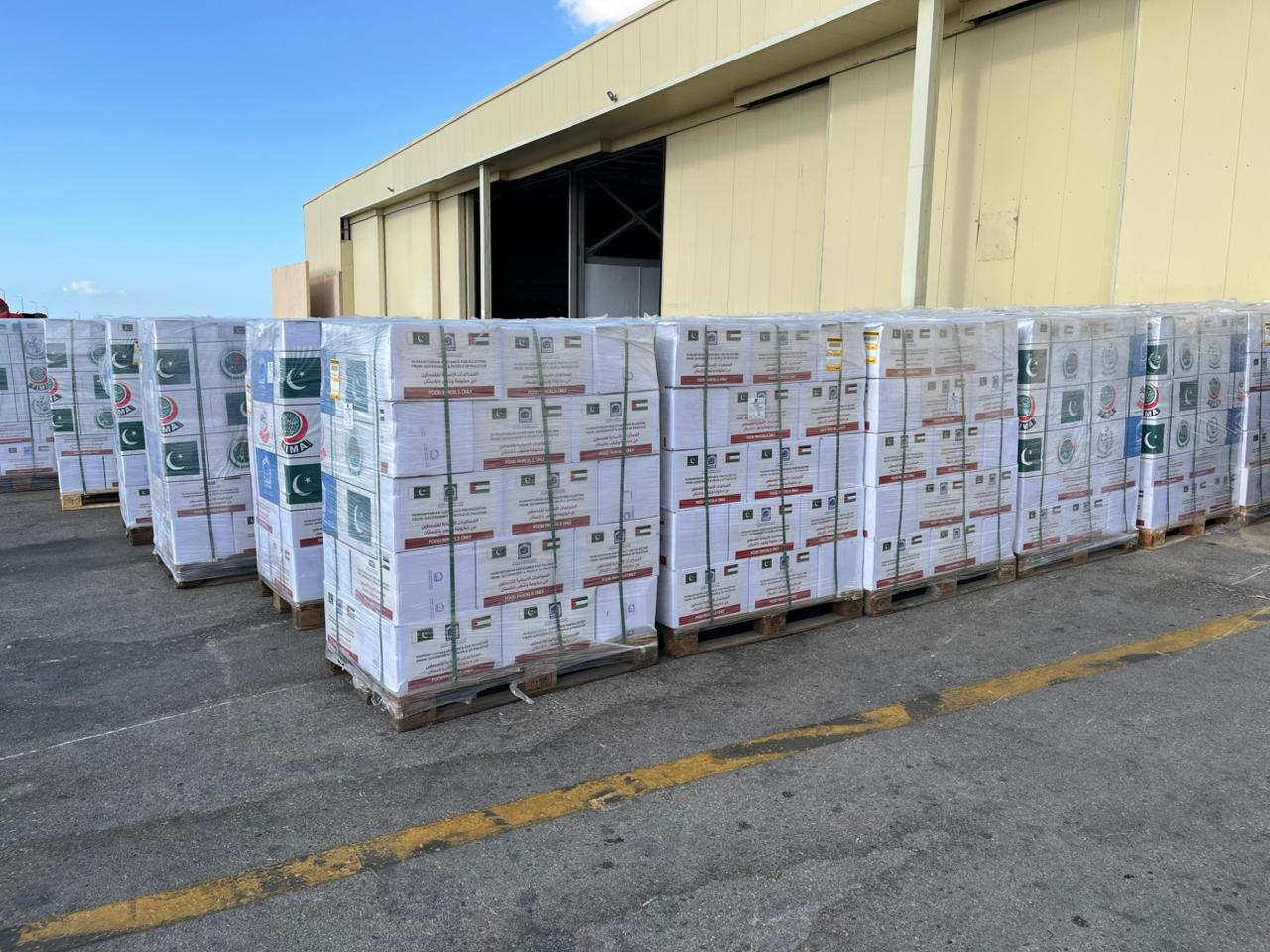 ووصلت طائرة خاصة مستأجرة من باكستان، محمّلة بـ 100 طن من المساعدات الإنسانية والإغاثية، إلى مطار العريش الدولي بعد ظهر اليوم، حيث تم تسليم الشحنة إلى جمعية الهلال الأحمر المصري لتتولى إيصالها إلى سكان القطاع.