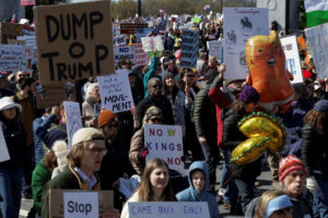 ونزل المحتجون إلى شوارع المدن في جميع أنحاء الولايات المتحدة أمس السبت في مسيرات مناهضة لترامب وصفها المنظمون بأنها دعوة لمناهضة الحرب على إيران.