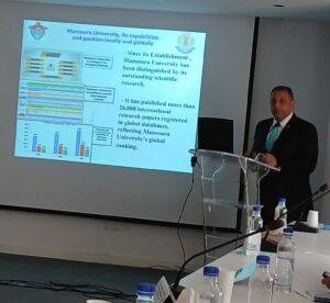 وخلال اللقاء قدّم الدكتور محمد عبد اللطيف عرضًا تقديميًا عن جامعة المنصورة، وكذلك ورقة بحثية بعنوان: “رؤية كلية السياحة والفنادق بجامعة المنصورة للتعليم السياحي وأهدافه بمختلف تخصصاته” استعرض فيها رؤية الكلية في تطوير برامج التعليم السياحي بما يواكب تطورات سوق العمل المحلي والإقليمي والدولي، ويضع خريجيها في موقع تنافسي حقيقي.