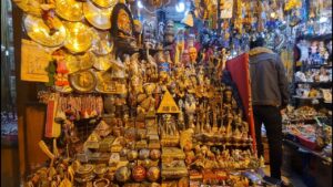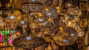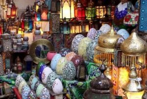 أول ما يلف النظر في خان الخليلي المشربيات مطلة على الشارع أو الحارة، وأحواض الماء والأزقة الضيقة وسط زحام الملأ بالألوان والأحجار الكريمة والذهب والفضة، والمقاهي التي تحمل حكايات كل ما زارها، والمنتجات التي تفوح رائحة مصر القديمة، جو لن تجده في منطقة اخري غير الخان وهو ما يميزه.