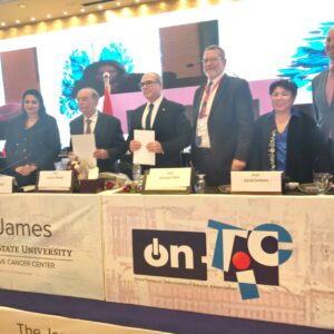 شهد المؤتمر الدولي لأورام الصدر والرئة الذي أقيم بالقاهرة توقيع بروتوكول تعاون بين المعهد القومي للأورام جامعة القاهرة وجامعة ولاية أوهايو، وهو أول شراكة مباشرة بين جامعة مصرية وجامعة أمريكية كبرى في مجال الأورام.
