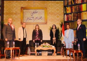 وتخلل برنامج الملتقى باقة من الفقرات الغنائية قدمتها فرقة “كنوز” بقيادة الفنان القدير “محمود درويش”، الذى تغنى بأشهر الأغاني الوطنية لنجوم الطرب فى مصر والعالم العربي، منها: “الله أكبر بسم الله، النجمة مالت على القمر، عظيمة يا مصر، احنا الشعب، لفى البلاد يا صبية”.
