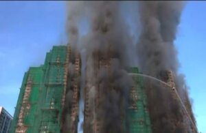 وأظهرت مقاطع فيديو من موقع الحريق تصاعد ألسنة اللهب من أبراج شاهقة، كانت مغطاة بشباك بناء خضراء وسقالات من الخيزران.