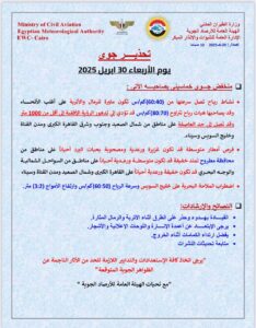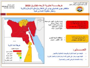 خريطة تحذيرية ليوم الأربعاء الموافق ٣٠ أبريل ٢٠٢٥