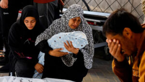 وقال سامر الأطبش وهو من أقارب بعض القتلى “بنات أخويا الثلاثة، لقيناهم في الشارع، هدنة وما هدنة، إيه ذنب أطفالنا؟ إيه ذنبنا إحنا؟”.