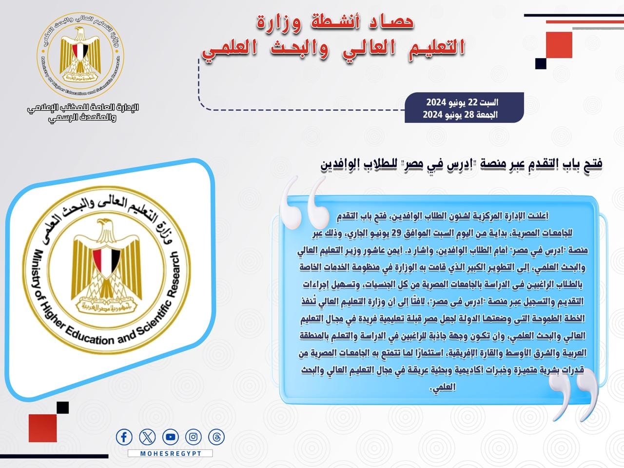 حصاد أنشطة وزارة التعليم العالي والبحث العلمي في أسبوع